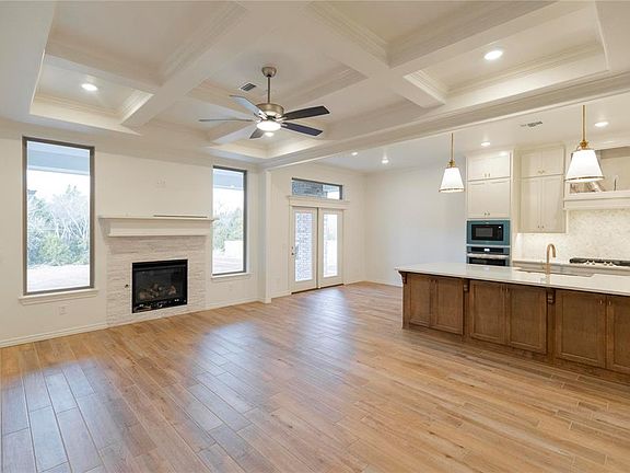 OVERSIZED 0.775 ACRE INTERIOR LOT IN PRAIRIE MEADOWS! This Shiloh Bonus Room floorplan includes 2,805 Sqft of total living space, which features 2,450 Sqft of indoor living space & 355 Sqft of outdoor living space. There's also a 610 Sqft, three-car garage w/ a storm shelter installed because, at Homes by Taber, safety is never an option. A storm shelter is included in every Taber home because your safety is important to us and will never be overlooked. This sumptuous home offers 4 bedrooms, 3 bathrooms, 2 covered patios, a large utility room, & a spacious bonus room! The ample living room embraces a stunning coffered ceiling, a stacked stone surround gas fireplace, wood-look tile, elegant crown molding, Cat6 wiring, & two 7' windows. Your high end kitchen supports cabinets to the ceiling, impressive tile backsplash, built-in stainless steel appliances, stunning pendant lighting, an oversized center island, a large corner pantry, & 3 CM countertops. Primary suite offers a sloped ceiling detail, windows, a ceiling fan, our cozy carpet finish, and 2 separate walk-in closets. The prime bath supports separate vanities, a corner Jetta Whirlpool tub, & a huge walk-in shower! Property is fully sodded w/ an in-ground sprinkler system in both yards! Covered back patio offers a wood-burning fireplace, a gas line, & a TV hookup. Other amenities include Healthy Home technology, a tankless water heater, a whole home air purification, R-44 Insulation, & so much more!