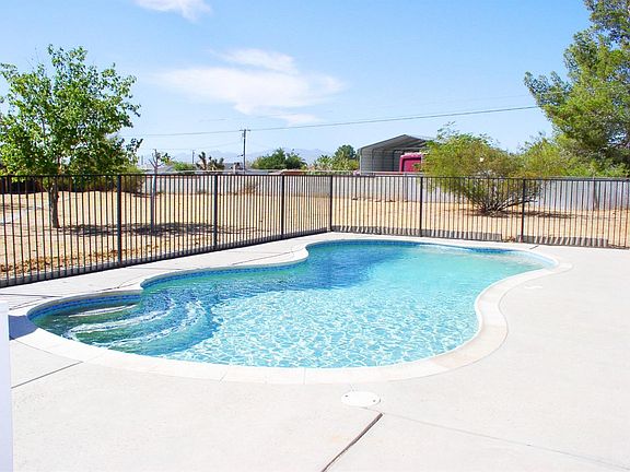 Move Fast on This Desert Knolls Pool Home! If location is important to you then you just found your home in Apple Valley. Enjoy the covered front porch or your covered back patio next to the sparkling pool & take in the Mountain views. Living Room has nice corner brick fireplace. Dining Room has built in hutch cabinet. Kitchen has stainless steel appliances, walk-in pantry, desk area plus a kitchen nook eating area to enjoy the view of your pool. Master bedroom has walk-in closet. Master bathroom has tile counter tops & shower. Good size guest bedroom. Hall bathroom has tile counter tops & tub/shower combo. Ceiling fans thru-out. Plenty of closets & storage cabinets for all your things. Indoor laundry room with built-in ironing board & half bath close for pool & garage access. 2-car attached garage with new garage door just installed plus extra storage room off of garage. RV parking access plus shed. Tile roof. Chain link fencing around back yard plus wrought iron fencing around pool.