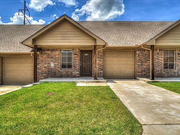 Beautiful, clean and newer apartment ready for you! Wood vinyl flooring throughout, 1 car attached garage, granite counters and kitchen appliances include, refrigerator, stove, microwave and dishwasher. Open floor plan. Close to shopping, entertainment, restaurants, major highways and roads, great for commuting! Call 405-835-2307 to schedule your appointment and receive a list of other available homes. Tenant is responsible for utilities. $30 application fee. Small pet allowed with $300 non-refundable pet fee