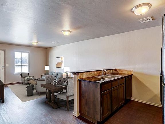 First MONTH FREE with 13 month lease term Special! Adorable 2 bedroom, 1 bath apartment home with single car attached garage. Gorgeous wood vinyl plank flooring in the living, kitchen, bedrooms, and closets. The kitchen features beautiful stained cabinetry, granite counter tops, black appliances including refrigerator. Pets are case by case. Please contact Trenna for more information and to set up a showing 405.343.4388