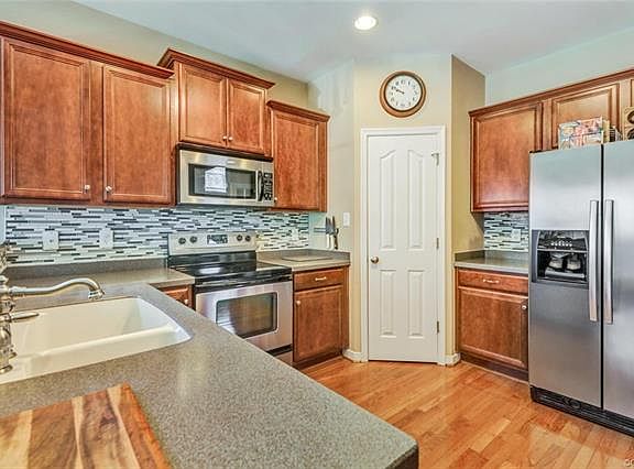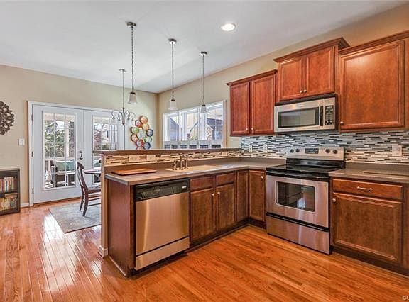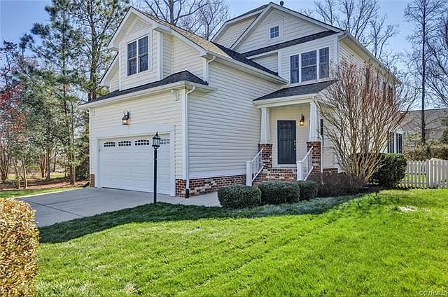Midlothian, (Area 64 ; Hawthorn Village), built in 2007, 2,557 sq. ft., 4 bedrooms, 2.5 updated baths, first floor hardwoods, closet factory closets, dining room, large eat-in kitchen with breakfast book, bar seating, stainless steel appliances, tile backsplash and pantry. Spacious family room with built-in surround sound and gas FP. Maintenance free vinyl siding, fully fenced in rear yard (one side is privacy height), 2-car front entry garage with above storage, paved driveway, maintenance free screened porch, paver patio, irrigation and outdoor lighting. NEW Lenox HVAC, NEW Apple garage door! Conveniently located to 288, shipping, dining and hospitals. Evergreen, Midlothian, Midlothian.