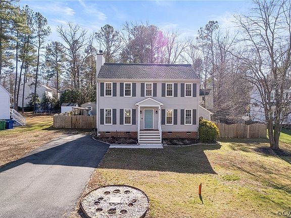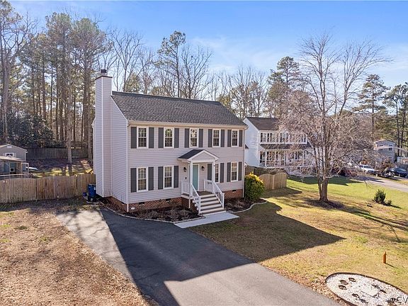 Just listed in Midlothian with chickens & raised bed gardens! Welcome to 13807 Kentucky Derby Place in the Triple Crown/Antler Ridge neighborhood. This move-in ready 2-story colonial home consists of 3 bedrooms & 2.5 bathrooms over 1,752 sqft of living space. Upon entering you are greeted with a beautiful full-length foyer with luxury vinyl plank flooring & chair/picture/crown mouldings. The carpeted family room has a wood burning fireplace, crown moulding & sliding doors to the rear deck. The formal dining room has LVP flooring, chair/crown moulding & custom built-in cabinets. The recently remodeled kitchen has granite counters, Shaker cabinets, stainless steel appliances, custom shiplap, large eat-in area with banquette seating & vaulted ceiling. The carpeted 2nd floor has a primary bedroom with walk-in closet & ensuite bathroom. 2 additional bedrooms, an updated hallway bathroom, laundry room w/ custom shelving & pull-down attic storage complete this level. The exterior features a new 2022 hot tub, fire pit, private rear deck, custom chicken coop/run, fully fenced back yard, 5 raised garden bed planters, 2 detached sheds/workshops wired for electric & an attached storage shed.