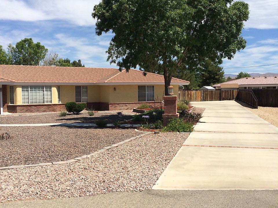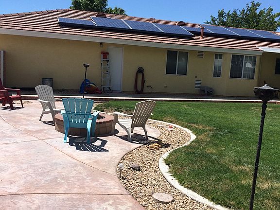 2555 Square feet 3/4 acre lot, newly painted, move in ready, fully landscaped 5 bedrooms (or 4/1 den) 2 1/2 baths (1 w/spa tub/handicap rails) Oversize 3 car garage (25'x35') finished/insulated walls, extra outlets RV Storage/pad 16' x 47' area with power and water, double gate w/removable post 2 Storage sheds, 15' x 8' and 16' x 10' AND a 20' x 30' Covered Carport - Storage Galore! Dog run 16 x 28 low maintenance play pool with Baja reef/umbrella holder Child safety fence Swim jet (swim against water jet for fitness) Nature 2 pool sanitizer auto chlorinator, auto fill, over-size D.E. filter Barracuda G3 auto pool cleaner Solar cover and winter cover Power panel outlet and water in pool equipment area and surrounding patio areas Piped for solar water Gas line by pool for BBQ (island if preferred) Gas fire pit Auto sprinkler front (drip) and back yards Large side patio with power Water bibs on each side of the house 2 x 6 walls with R19 Insulation, Ceiling R40 Cement tile roof (lifetime) Solar (Vivant leased) Heater/AC 97 EF Heat System Updated kitchen, household cabinets Stainless Steel appliances, refrigerator goes with seller Updated bathrooms TV available in each room; cable, satellite, FIOS ready Updated ceilings (no popcorn) Ceiling fans in all bedrooms Dual Pane Windows New carpet Gas corner fire place w/heat blower Built-in ironing board Window seats in 2 front bedrooms Almost new water heaters (2) BBQ Gas outlet at house Larger than average hallways (3 1/2')