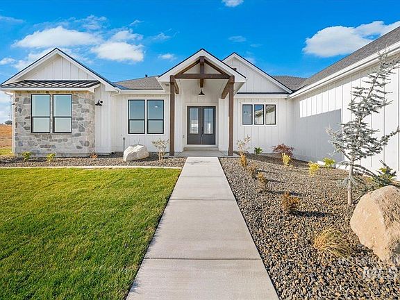 AMAZING VALUE!! With spacious mountain views, this NEW HOME ON 1 acre in a boutique subdivision marries country life with superb location. Accomplished Builder, Heritage Homes LLC, has created a lovely and practical home featuring 4 beds and 3.5 baths including TWO Owner's suites and an oversized 3 car garage with 10' doors. Thoughtful construction features high end finishes (quartz, LVP), and a large Chef's Kitchen (check out the 48" range and room sized pantry!). Exquisite details are prominent throughout the home (finish work features & thoughtful design). A grande vault spans the entire living/kitchen space. A towering entry invites you home through double front doors while the sprawling back patio encourages an easy indoor/outdoor lifestyle. A short jaunt to Deer Flat Wildlife Refuge offers swimming, boating, water sports, and miles of hiking trails. Just minutes to freeway, shopping, dining, and medical. This home is a gem and won't last long! (Sub does NOT show up in Google. Use directions OR call)