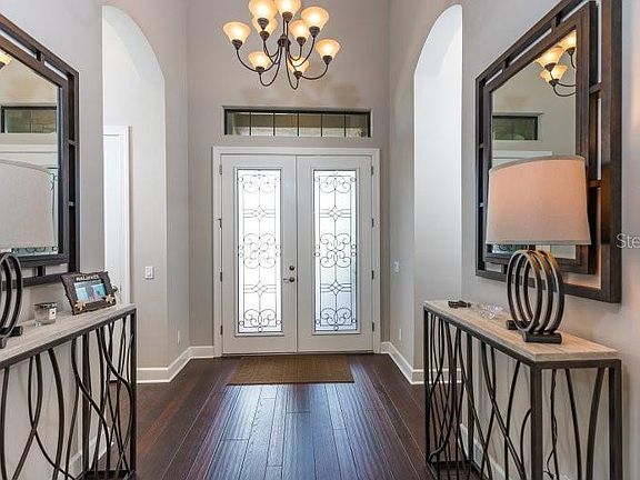 *Licensed Realtor Owned Home*** Overlooking the 6th fairway and located on the most desirable cul de sac in Lakewood Ranch's Esplanade Golf & Country Club, this 2015-built residence is a stunning reflection of Country Club living. Taylor Morrison's immensely popular Francesco floorplan offers 3 bedrooms with 3 en-suite baths, a Den, and a half bath, with open concept living spaces that make this home a dream for entertaining. From the moment you come through the double front door entryway, this stunning home opens up into an opulent great room which boasts 12 foot ceilings and unique tray ceiling designs fit for a million dollar home. Exquisite features include crown molding throughout the entire home, recessed lighting, beautiful engineered hardwood floors, stone wall, wet bar, 8' interior doors, beautiful light fixtures, and custom made window treatments. The show piece of this home is it's large state of the art kitchen featuring a massive island, 42 inch cabinets with glass uppers, under cabinet lighting, tile back splash, upgraded stainless steel appliances, 5 burner gas cook top, and three perfectly picked pendant lights to finish out the space. The spacious master suite has large bay windows that basks the rooms in natural sunlight and overlooks the beautiful pool area, his and hers custom closets, and a large master bath with garden tub and oversized shower complete with rain shower head.