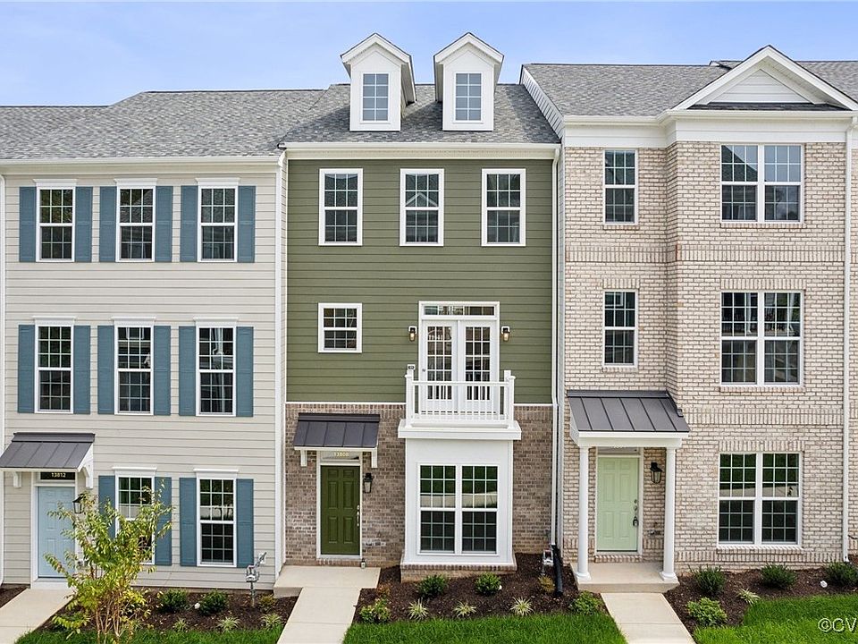Welcome to the Davis by Main Street Homes! This Energy Star-certified, three-story interior townhome offers exceptional features, including three bedrooms, 3.5 baths, oak stairs from the first to the second level, a rear-entry 2-car garage, tankless water heater, a rear deck, and a second-floor front balcony with elegant French doors. The exterior is finished with durable Hardie-plank siding. You'll find a convenient bedroom, full bathroom, and coat closet on the first floor. The second floor boasts an open-concept design with a spacious great room, dining area, powder room, pantry, and gourmet kitchen featuring quartz countertops, a ceramic tile backsplash, stainless steel appliances, a gas cooktop, and a large island—perfect for entertaining. Upstairs on the third floor, the primary suite offers a tranquil retreat with a luxurious ensuite bath, including a ceramic tile shower, double vanity, and a large walk-in closet. A guest suite with its own full bath, walk-in closet, and laundry room completes the upper level. Living in Randolph Pond has numerous amenities, such as community sidewalks, a scenic park with seating and a pergola, a dog park, and walking trails. This low-maintenance community is part of a top-ranked school district and is conveniently located off Coalfield Road. It offers quick access to Midlothian Turnpike and Rt. 288, offering plenty of shopping, dining, and entertainment options.