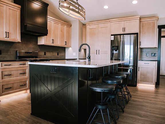Located in the desired Ranch development just minutes north of Bismarck! This ranch style home offers a lot of ''wow'' appeal and upgraded amenities. The exterior features LP Smart Siding, steel and stone. There is a covered front porch with maintenance free handrail and covered back deck with maintenance free handrail and decking. As you enter the home you will be amazed by the 16ft vaulted ceiling with a stunning beam structure. A fireplace is a focal point of the room with tile and a shiplap surrounding wall. The kitchen has custom blonde maple cabinets and a black stained island. A hidden pantry with grocery door to the garage is a show stopper in this kitchen. Quartz countertops, upgraded black stainless steel appliances, backsplash, under cabinet and toe kick lighting are just a few more added bonuses in this beautiful kitchen. The master suite has a barn door leading to the walk in closet. The master bathroom has a custom tiled shower, dual sink vanity with quartz countertops, linen closet and floating shelves. Laundry room, 2 more bedrooms, and a full bathroom complete this level. All interior doors are solid core, all plumbing fixtures are matte black, all cabinets are custom with soft close drawers and doors, all countertops are quartz, all vanities are comfort height (including laundry and baths), all recessed lights are LED and all bedrooms have ceiling fans. The unfinished basement is framed for 2 more bedrooms, bathroom, storage, family room and wet bar. The exterior basement walls are spray foamed and most interior walls are insulated for sound in basement. The garage is fully finished with gas heater. Home is pre-wired with Greenlight Systems for future audio and security. Buyer to verify square footage, taxes and specials. Agent/Owner