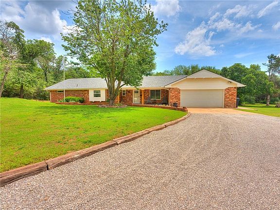 Back on market due to Buyer school change. No fault of seller. Completely remodeled home and new 40' x 50' shop on 2.5 acres mol. New lighting, windows, interior/exterior doors, texture/paint, carpet/vinyl wood plank flooring, counter tops, faucets, and kitchen appliances. All new cabinets throughout home adding additional storage and closet space. Add-on includes enormous master suite with adjacent office/flex room, master bath, and utility room. Two new HVAC, tankless water heater, softener, and spray foamed attic. Sprinkler system installed in 2022. Water well pump installed 2023. 500-gal propane tank heats water and heater. Shop is plumbed for bathroom, small kitchen and washer/dryer. Framed, not finished out. Huge porch off shop and can accommodate RV. Manual switch installed on panel for future generator. Beautiful acreage with mature trees. Sundance series Tuff shed with chicken coop built on. Enjoy watching deer, fox, birds, and more from the private covered back patio. Great location with easy access to I-35 and Kilpatrick. OKC utilities and Edmond schools.