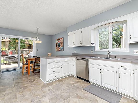 MOVE IN READY! This raised 1.5 story home features primary bedroom w/ bathroom and two additional bedrooms w/ hall bathroom on the main level. Upstairs features one large bedroom w/ private bathroom (and secret playroom) and a large office/flex room. Unfinished basement at the garage level and extra deep garage give plenty of storage! Home features vaulted ceilings in the great room, white kitchen cabinets, updated bathrooms, todays colors and plenty of space! This home is conveniently located near I-35 with access to I-435 and US-69 highway as well as top-rated schools, shops, restaurants, etc.