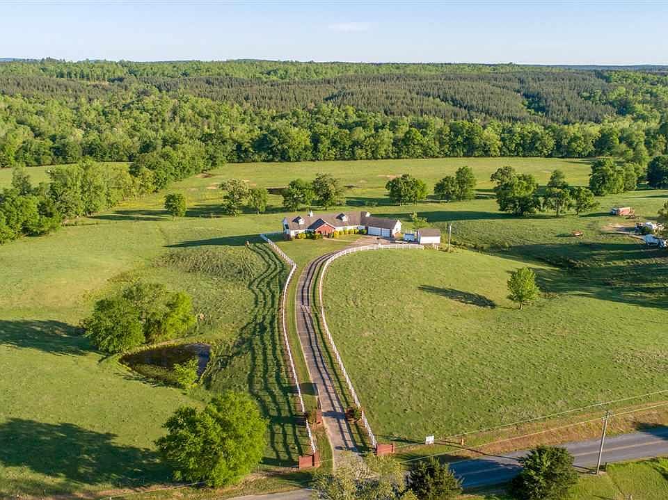 5 bedrooms, 4 baths, 5400 sf. home surrounded by pasture. Lake Hamilton School District. Frontage on Big Mazarn and Meyer Creek. Office on main level could be a bedroom. Kitchen, living, dining & fireplace on both levels. 2 bedrooms up, 3 bedrooms down. Full width deck and patio across back with wonderful views. 40 X 100 Commercial shop with 5 16 X 14 garage doors. Older 3/1 farm house currently being used as an office