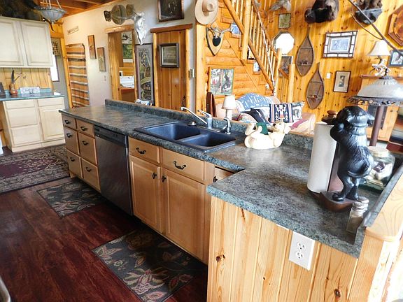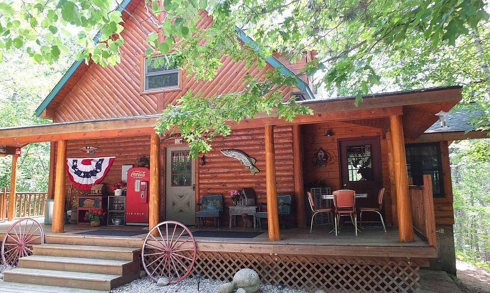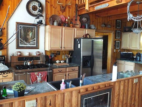 SPECTACULAR VIEW- With this 2 bedroom, 1 1/2 bath lodge style home or cabin. Tranquility at its best. Wrap around deck with hot tub overlooking a wooded 5 acres of forest. Knotty pine interior, cathedral ceiling and tons of up north charm. Commercial style kitchen, formal dining room, breakfast nook and laundry room give you everything you need and in a secluded location. D-2716 $ 159,900