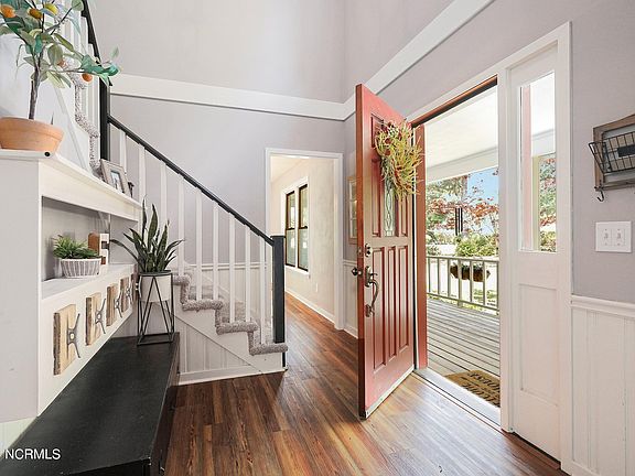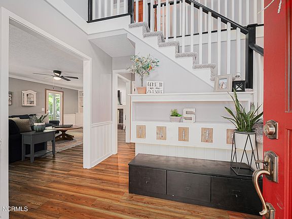 Welcome to your charming slice of countryside paradise in the center of Hampstead! This captivating blue farmhouse offering a delightful blend of comfort and rustic elegance. Situated on a generous .91-acre lot, this 2679 sq ft home boasts quintessential farmhouse features including a sprawling wrap-around porch, perfect for sipping lemonade on lazy afternoons or enjoying scenic views of the surrounding landscape.