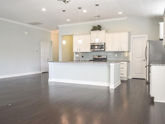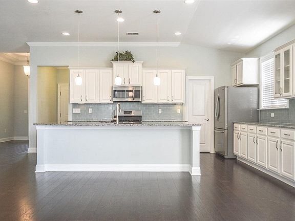 - Features: Breakfast Bar, Kitchen Island, Pantry, Stainless Steel Appliances, Solid Surface Counters