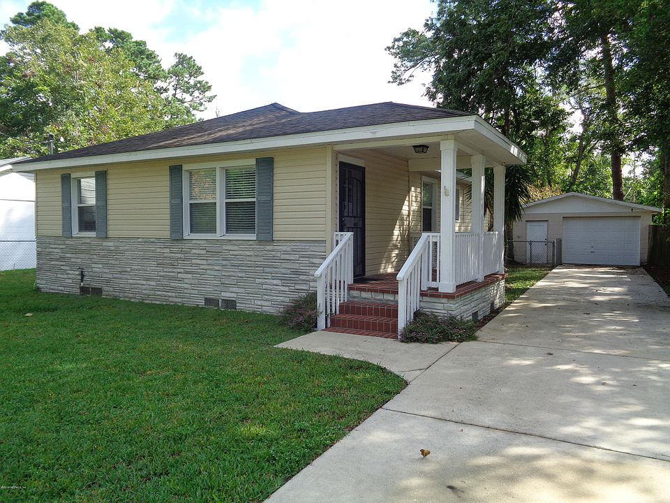 This cozy bungalow in Murray Hill has been updated with Beautifully refinished hardwood floors, new paint, New Vinyl floors in kitchen and bonus room. This is a two bedroom one bath with bonus/ office area, detached garage with washer and dryer connection. Located in quiet cul de-sac . Don't wait, wonderful starter home.
