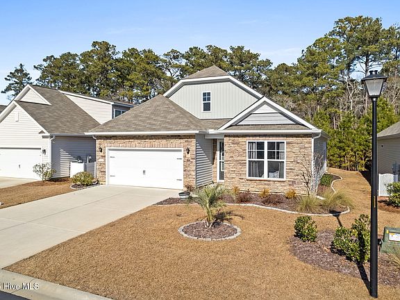 Discover your dream home in Carolina Shores, NC! This stunning 3-bedroom, 2-bath home boasts a bright, open-concept design perfect for modern living. The spacious kitchen features white cabinetry, granite countertops, a large island with a breakfast bar, and sleek stainless Whirlpool appliances. The private primary suite offers a luxurious walk-in closet and dual vanity, while two additional bedrooms provide plenty of space for family or guests. Step outside to the rear covered porch for seamless indoor-outdoor living. With included internet, landscaping, and irrigation, plus America's Smart Home features, you can control your home with ease using your smartphone or voice commands to Alexa. Conveniently located near shopping, dining, and entertainment, this home is the total package!