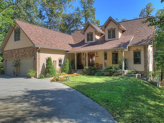 Located on 3 lots (one of which could be divided & sold separately) in Woods Bend on a peninsula at Wood Creek Lake, this gorgeous 3 level home is on it's own point with water views practically from every room- the views are even unobstructed by the laminate safety glass the owner used on all deck railings. A private paved drive w motion sensored lamp posts along the way lead to the home situated out of sight on the backside of the lots overlooking the lake. The 1.5 story stone/dryvit construction was custom built & meticulously maintained. Enter thru the covered stamped concrete porch into a wide open tiled foyer that looks thru entire house to the water. 1st level offers- powder room-utility-kitchen-combo/dining/great room, master. 2nd level- guest bdr, full bath, rec room/balcony. Lower Level- family room/kitchen combo/2 guest bdrs, full bath & safe room. Amenities-security-hardwood-composite decking-outdoor shwr-pet shelter..Ask agent for detailed room by room description.