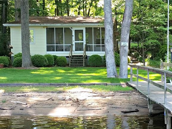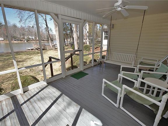 Quaint cottage with lots of gathering room for friends and family in open kitchen/living room. Screened lakefront porch offers serene lake gazing out to private covered pier. Nicely landscaped w/curved drive to carport entrance. Bonus/Sewing room can be used for your purpose as can front small bonus room Two good sized private bedrooms complete the interior. Huge Kitchen w/ large pantry and all appliances. washer/dryer also stay. Level yard and easy lake access make this one perfect lake place.