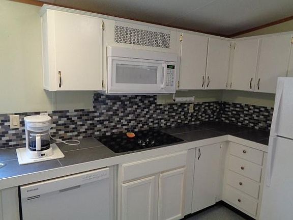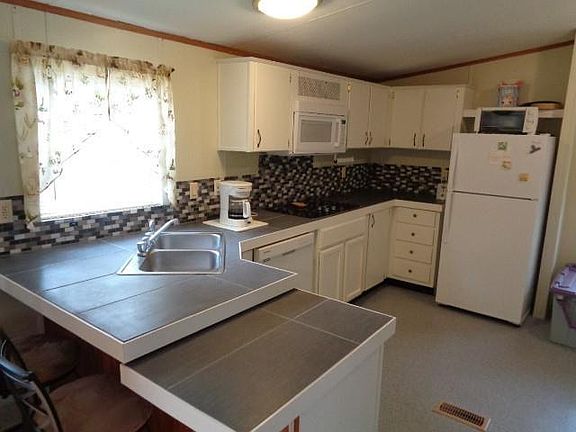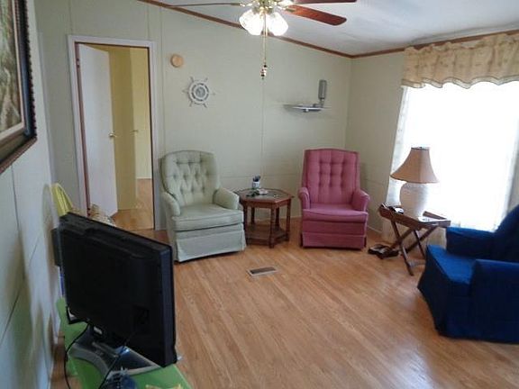 This 3BR/2 Bath MH is move in ready, and is on a double lot. Hardwood floors thru out- no carpet. Kitchen has been customized, to include tile counters and backsplash, cooktop w/ built in the wall oven and microwave. Cabinets are a very popular white in color, and eat in bar opens up into the vaulted ceiling living room. The walls are solid colors- no flowers. The master bedroom furniture stays w/ the house. A very popular resturant/bar is located on the front of the subdivision, and deepwater landing right down the street on Shellman Bluff Rd. Priced to sell fast.