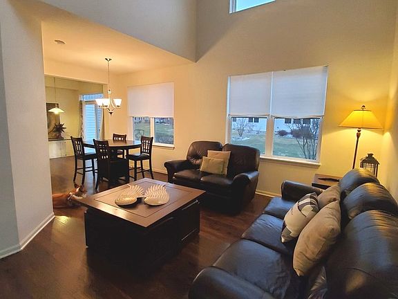 Stunning Deerbrook model end unit in the North Bay of Cambridge Lakes! Private entrance leads into a dramatic 2 story entry. Dramatic ceilings with tons of natural lighting. Open floor concept throughout the living room, dining room and kitchen. Gourmet kitchen features all stainless steel appliances, food pantry & breakfast bar with canned lighting. Breakfast room has SGD to concrete patio. 1st floor den. Master bedroom suite has large WIC, private bath with double vanity, walk in shower & soaker tub. 2nd floor laundry. Attached 2.5 car garage. Amenities include clubhouse, fitness center,game room, outdoor pool and playground. Cambridge Lakes Charter School in the community. Easy access to Rt.72, Rt. 47 & the I-90 expressway.