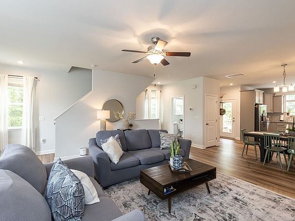 Stylish 2,268 SF 4-Bedroom, 3 1/2 Bath END UNIT townhome minutes to charming downtown Apex and next to open/spacious green space. Modern kitchen with sleek granite countertops, elegant tile backsplash, ample storage space, counter seating and stainless steel appliances is open to the dining and living room and has terrific natural light. Luxury vinyl floors on the second level and new carpet and fresh paint. Pretty owner's suite with a walk-in closet, walk-in shower, & double vanity. With its full bath, the lower-level guest suite leads to an entertaining patio. The location is fantastic - US1, 540, Beaver Creek Shopping Center, Jordan Lake and everything Apex!