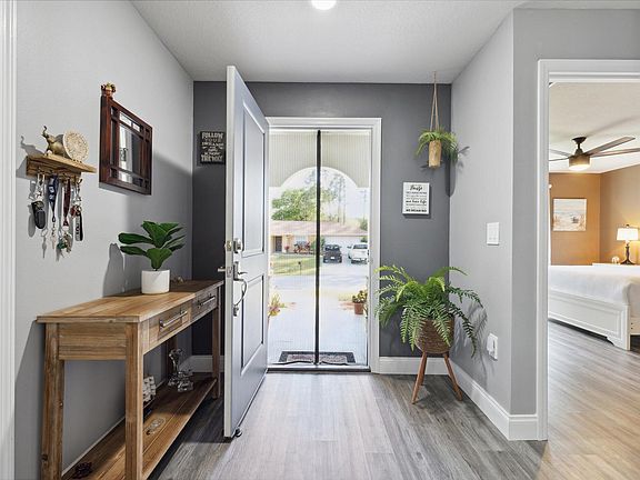 OVER $15K OF UPGRADES!! Exterior upgrades incl a blue epoxy garage floor, faux stone trim, lanai enclosure, tiled front entrance, patio &gazebo for optimal outdoor entertainment space. Interior upgrades include the fireplace wall w/ insert, kitchen backsplash, upgraded ceiling fans, bathroom vanity mirrors & designer interior paint. Don't miss out on this opportunity for upscale living w/ all the bells & whistles!