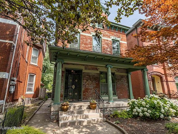This beautiful circa 1900 Victorian home features the perfect blend of modern updated amenities (such as its brand new mini split cooling system and ~2 year old central AC system) while preserving its timeless charm and character. This amazing gem offers over 3100 SF of living space with 5 bedrooms, 4 full baths, a full kitchen and 3 additional kitchenettes. Vintage wrought iron fencing frames the large covered front porch and gorgeous garden in the front yard, which has been showcased on Old Louisville's Garden Tour. The stunning entry foyer will delight your guests as you invite them into the formal living and dining rooms. The long hallway to the rear of the house features a laundry area and a full bathroom and leads to the large eat-in kitchen with oak cabinetry and tile floors. The kitchen opens to the covered rear porch which looks out over the well-manicured gardens in the fully fenced backyard, along with a 3-car detached garage with alley access. The rear of the house also provides access to the outside entrance for the large cellar that runs almost the full length of the house, offering ample storage space. You will love the elegant primary bedroom which can be found on the 2nd floor. It has its own private full bathroom, kitchenette, and fireplace. The 2nd floor also features two other bedrooms that share a full bathroom and another kitchenette. The 3rd floor includes two more bedrooms that share a full bathroom with clawfoot tub and skylight and another kitchenette. Schedule your private tour today or join us at an upcoming open house! All this nestled on a 35' X 200' expansive fenced lot. Schedule your private tour today or join us for at an upcoming open house!