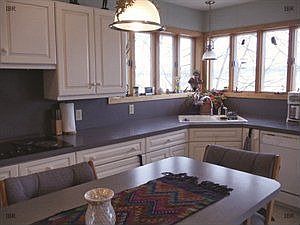 Easy living, comfortable year round lake house. Enter the well-landscaped fenced garden to 10 x 16 mudroom. There is a bright custom kitchen with breakfast counter and LR/DR area with pellet stove overlooking the lake. Enclosed spa porch off LR and first floor bath w/shower. Four bedrooms and half bath on second floor. Full deck across the front of house, 71 steps to 70 grassy beach, storage shed, pile driven dock and electric boat hoist. Central air.