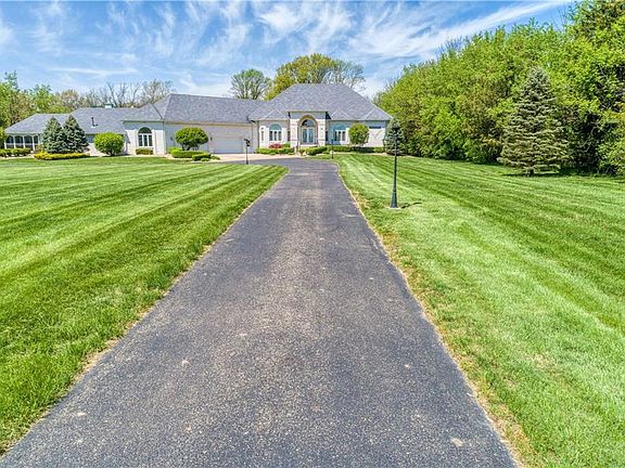 Stunning French Country Estate 5.47 acres with no HOA restrictions, 800 Sq. Ft. private guest/In-law quarters w/ Kitchen and private screen porch. 6 BR total. Large Main floor office, Formal Dining, Great Room, Superb Kitchen for entertaining, Master Suite on Main Level with private deck and fireplace. The lower level features a second Full Kitchen, Separate Theatre Room & Family Room, 4 large bedrooms. Also features a 76 x 42 climate conditioned pole barn with full bath and Kitchen. Ideal for entertaining large gatherings. Private stocked pond. Half mile from new Commercial Development on SR 135. Center Grove Schools.