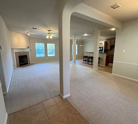 Gas fireplaceSpacious backyardOpen floor planDedicated dining spaceCovered patioCorner lotIsland kitchen