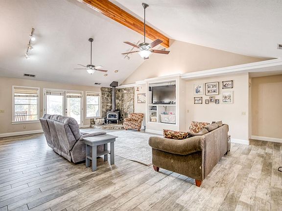 Be ready for this home to take our breath away. Follow the paved drive up to the house on a hill. As you enter this home you will find beautiful wood look tile throughout. Large oversized Great Room perfect for family gatherings, with built in entertainment center and wood stove tucked in the corner for those cozy winter nights. The large farmhouse style kitchen opens to the Great Room with a breakfast bar. The kitchen is a chefs delight with counter space all the way around and a beautiful center island, and pass through window for outdoor entertaining. The dining room has extra storage with cabinetry, 2 wine fridges, and plenty of space for your oversized dining table. Follow the hallway lined with storage cabinets and a half bath to the Master Suite. The spacious Master Suite has vaulted ceilings its own wood stove and a nook just right for your home office. Master Bath has soaking tub, double sinks, his and hers closets. Additional bedrooms off of the Great Room with their own private hall and bathroom. Kids/Guest bedrooms are large with walk in style closets, extra overhead storage, and built in desks in each. Outside you have 4 acres of usable rolling hills, chicken coop, orchard and wonderful mature trees. The detached shop plenty of space for your toys, or hobbies, there is even a possible guest room above. The sparkling pool will keep you cool all summer long. All this and only a 5 minute commute to Prather with local shopping or a 20 minute commute to Clovis.
