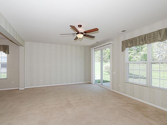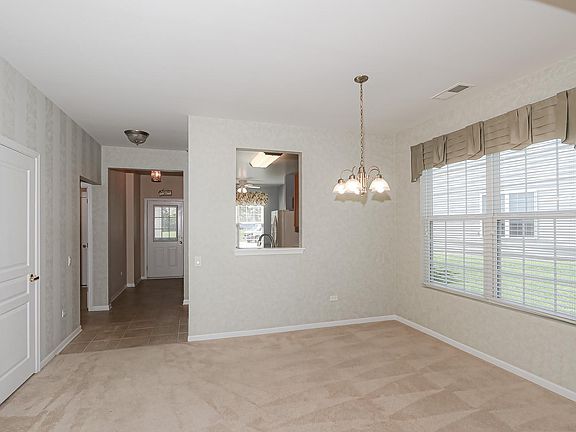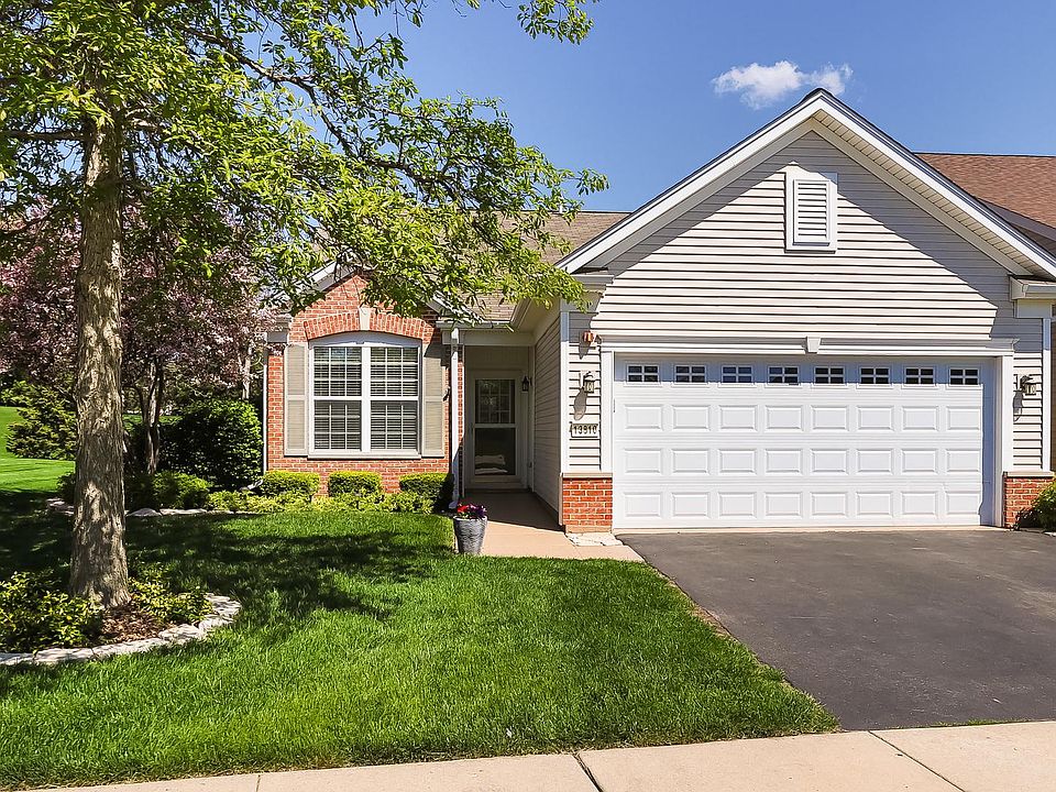 Perfectly located on a nice private premium lot this sharp James model is ready for a new buyer! Upgraded brick elevation with mature landscaping~Spacious eat-in kitchen freshly painted with lots of maple cabinets/LG SS microwave and dishwasher~Combo dining and living room~Master suite with bay window/private bath which includes double sinks/maple cabinets/walk-in shower/HUGE walk-in closet with custom organizers~Generous sized secondary bedrooms~Laundry room has extra maple cabinets/new washer and dryer(2022)~Garage is filled with lots of cabinets and storage racks for all your tools/Drop down aluminum ladder to attic storage/New garage door(2020)~20X10 Patio with custom concrete sealer and matching planters to enjoy your stunning views and your professionally landscaped yard~Del Webb is an 55 and older adult community which includes a golf course/lots of ponds and parks/clubhouse with pool and exercise facilities