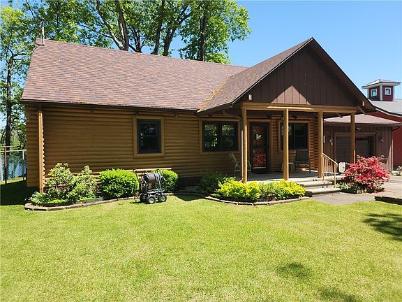 Charming lakefront cabin tucked away on a peaceful lot at Lake Jasper. This beautifully cared-for log-style home offers rustic charm and modern comfort. Vaulted ceilings, natural woodwork, and abundant light create a warm, inviting atmosphere. Features include a wood-burning fireplace, updated kitchen and bath, new carpet and laminate flooring, and energy-efficient Pella windows. Enjoy the spacious covered back porch for birdwatching or relaxing, and a private dock for fishing, kayaking, or quiet lake mornings. Home includes furnishings, tools, firepit, mower, and more—everything you need for easy lake living. Attached garage with workbench, plus a 12'x27' enclosed pole barn with electric. Roof replaced in 2019, hot water heater new in 2022, HVAC replaced in 2014. Propane tank, septic system, and fenced backyard. Surrounded by zoysia grass, flowers, and calming nature, ideal for a weekend getaway, vacation rental, or serene full-time residence. Subject to Lake Board Approval.