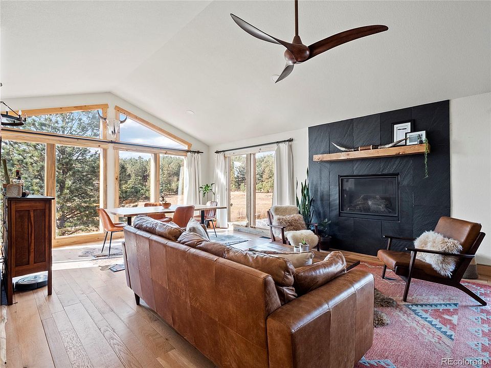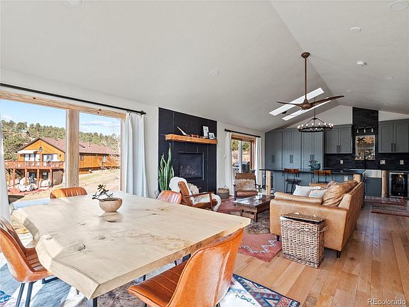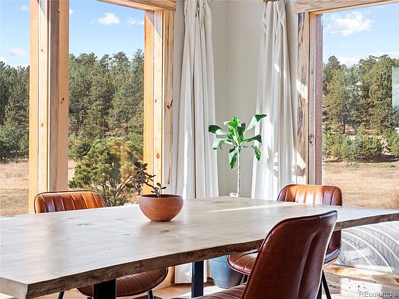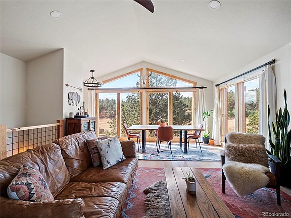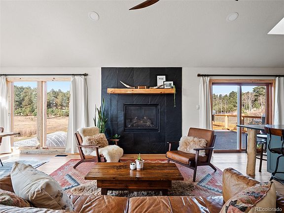 Mountain rustic meets modernism. The best of mountain living with the added bonus of convenient accessibility. Located just 0.2 miles off Hwy. 285, commuting to Denver is a breeze. This home has been completely customized top-to-bottom with the utmost attention to detail. The kitchen cabinets were hand-built by the owner who designs and builds bespoke kitchens for a living. The seamless 9'x6' kitchen island is one solid piece of soapstone, giving the space a rustic but elegant feel. The way the light beams through the windows surrounding the main living space brings in the most comforting warmth and serenity. The owner built out and installed all new custom trim work and sills. Even the mantle is a hand-hewn piece of Elm from a fallen tree in downtown Denver. There are three bedrooms on the main level including a lovely and large primary suite. All of the bathrooms have been updated and outfitted with beetle kill pine, travertine tile and sinks, new fixtures and vanities. Throughout the house is the most beautiful Oak engineered hardwoods, so you can clean and maintain with ease. The non-conforming bedroom on the lower, walk-out level was added by the owner. It acts as a secondary primary suite with its own en-suite bathroom. The laundry room was also added and houses the mechanical closet where the owners have installed a Rinnai tankless water heater and a water filtration and softening system. Off the kitchen is a brand new, 14'x16' Fiberon deck overlooking the prairie, perfect for sipping your morning coffee. The level of craftsmanship is bar none. There are too many upgrades to list, this truly special home is one you must see for yourself!