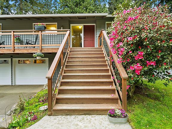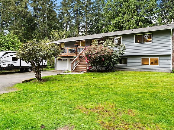 Spacious home on a large, .44 acre private lot w/ fully fenced yard w/ gated driveway. This peaceful, wooded setting makes for great entertaining! This light filled home has an open main floor featuring a large kitchen with newer stainless steal appliances, multiple dining spaces & a generous sized living room with hardwood & slate flooring. 3 bedrooms, including the primary suite are on the main floor, with a 4th bedroom, laundry with a 3/4 bath downstairs & a roomy family room w/ a free standing wood stove & private patio on the lower level. Lower floor could easily be converted to a MIL & the lot has possible potential for future subdivision - buyer to verify. Easy commuting & fantastic access to Mill Creek Town Center!