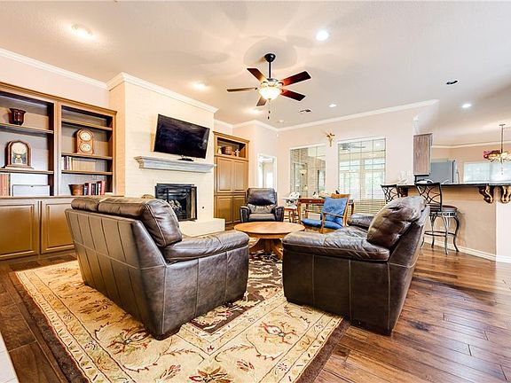 Garden Home neighborhood with pool, HOA maintained lawns, sprinklers and exterior painting. Beautiful wood floors in living, dining, bedrooms, office area and master closet. Absolutely a beautiful sunroom of high end quality overlooking a gorgeously landscaped backyard. It is very special!! Since 2015, all bathrooms totally updated, and granite and backsplash in the kitchen. Nice office area. New fireplace insert, On-Demand hot water, new appliances in 2015, stand-up vault storm shelter in garage. New high-impact roof in 9-2019. You definitely will not be disappointed in looking at this home.