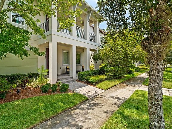 This 3-bedroom, 2.5-bathroom home in Laureate Park offers modern design with luxury upgrades throughout. Step into the open-concept kitchen, a chef’s dream featuring granite countertops, a custom backsplash, top-of-the-line appliances, and a modern ventilation system. The living areas boast premium tile flooring and tray ceilings, adding elegance and sophistication. The primary suite upstairs includes dual walk-in closets and a spa-like bathroom with dual vanities, a tub, and a glass-enclosed shower. Throughout the home, large windows flood the space with natural light, creating a bright, welcoming atmosphere. This home is designed for convenience, featuring smart home technology with remote-controlled lighting, a pool heater controlled via phone, and automatic drapes. It is also pre-wired for an electric vehicle charging station and cameras. Outdoor living is made easy with a covered patio and pool area, seamlessly transitioning from indoor to outdoor spaces. Perfect for entertaining or relaxing, the backyard features custom pavers, offering an ideal space for gatherings or peaceful evenings. Upstairs, the loft area provides flexible space, ideal for a home office, media room, or extra lounge area. The home includes a whole-house water softener system, ensuring comfort and sustainability. Additional features include a bar space in the dining room, crown molding on the main level, and custom dog bath in the laundry room for pet owners. The balcony offers stunning views of the neighborhood, creating extra outdoor spaces to relax. Located near Lake Nona’s top-rated schools, this home is ideal for families. Minutes away from Boxi Park, the USTA National Campus, Lake Nona Adventure Park, and the state-of-the-art Lake Nona Performance Club, this location offers countless recreational opportunities. With easy access to highways 417 and 528, you are just a short drive from Orlando International Airport, Downtown Orlando, and major attractions like Disney and Universal Studios. The home’s prime location also offers quick access to local hotspots such as Canvas Restaurant & Market and Lake Nona Town Center for dining and shopping.