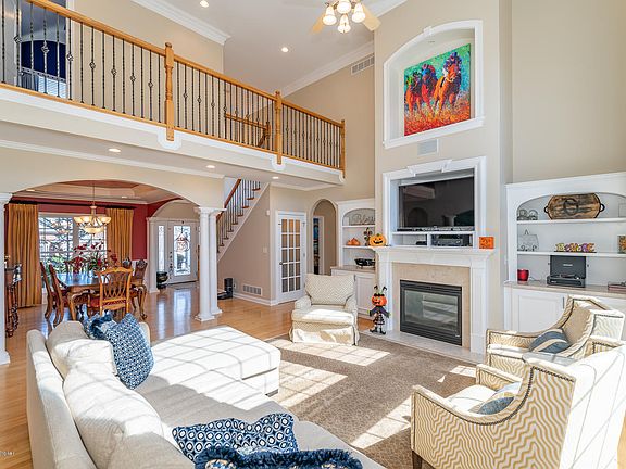 Absolutely gorgeous 1.5 story home in sought after Stone Lakes! This home features 4 spacious bedrooms, 3.5 baths, a beautifully finished lower level which offers a family room with wet bar with beverage/wine cooler, media room, full bath, office, and an abundance of storage space. The great room has soaring ceilings, a gas fireplace flanked by custom built-ins, and a spectacular wall of windows bringing loads of natural light into the room. Plenty of beautiful maple cabinetry in the kitchen, as well as a center island, and access to the lovely covered porch and backyard. Beautiful formal dining room to entertain your guests. Fabulous first floor owner's suite with hip vault ceiling offers a private bath with large double bowl vanity, whirlpool tub, walk-in shower, and a walk-in closet. Convenient first floor laundry with sink. Upstairs you'll find two additional bedrooms plus a huge bonus room/4th bedroom, large closets, and a spacious full bath with a double bowl vanity. Don't miss out, call today to schedule your personal showing of this amazing home today!!