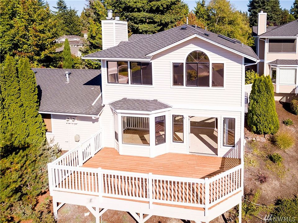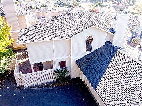 Wonderful 2-story condo home with broad views of Picnic Point, Puget Sound and the Olympics. Private courtyard in front with gardens. Large, new deck provides outstanding outdoor living. Expansive living room w/ gas fireplace and view windows. Master bedroom with vaulted ceilings, generous bath, sitting room w/gas fireplace. Upstairs laundry. Large 2-car garage. Gorgeous view & ready for your personal touch. Best location in Waterside - highest point and best view.