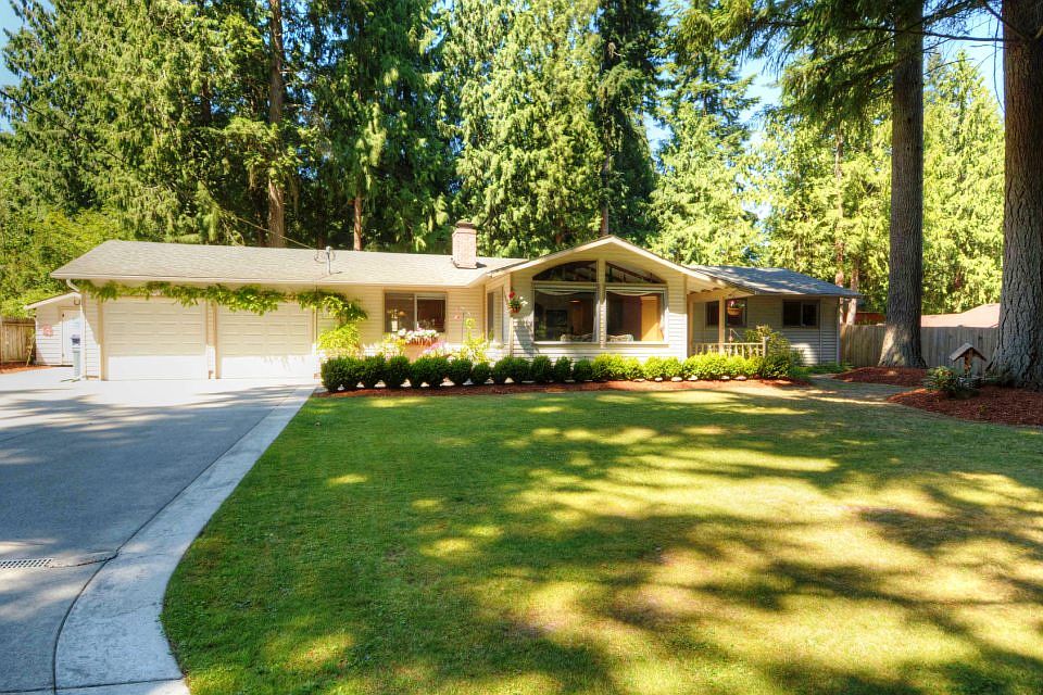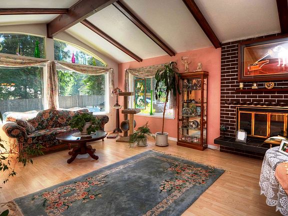 This beautiful rambler sits on a well manicured park-like setting w/mature cedar trees,raised garden beds, large deck & beautiful shrubs. simply amazing, The interior of the home is just as striking w/exposed solid wood beams a large, double sided fireplace that opens to both the living & family room, huge bay windows. This large sparkling home has both formal living & dining areas combined w/ flowing floor plan concept.The large master suite features french doors opening to gorgeous backyard.