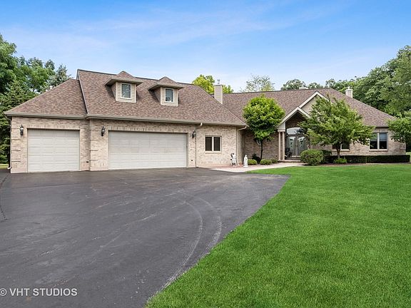 Beautiful custom all brick ranch home nestled in some of mother natures most scenic landscapes. Front gate & fence w/electric opener. This impressive home features, 4 bedrooms and 6 full baths, attached 3 car heated garage. Vaulted ceiling in living room, open floor plan including kitchen and dinning room. Walls of windows in the serene sun room with radiant heat flooring and knotty pine cathedral ceiling overlooking a large paver patio and a professional landscaped yard. Kitchen is bright & cherry with views of the outdoors, all SS appliances, refrigerator 2021, Wolf cook top, double oven, Fisher Paykal 2020, 42" maple cabinets, granite counters, A secondary sink sits conveniently in the separate island encourages conversation & interaction while preparing meals. As you walk from the kitchen into the heart of home your welcomed into the over sized living room with 20' ceilings & a floor to ceiling stone veneer fireplace. The master bedroom features a cove ceiling & sliding glass doors that open to a patio with views of the yard & mature trees. Master bath, whirlpool tub, separate shower, double bowl sinks, walk in closet & plenty of space. The 2 other bedrooms are tastefully done with great views of the out doors. On the way to the garage is a large laundry room with window and sink. Up the stairs you enter a 4th bedroom with 2 skylights, separate bath and it's own forced air furnace/air. Great for in-laws or other guests. Lower level is a full finished English basement with a built-in custom entertainment center. Full finished bath, wet bar and plenty of natural light. There is a large utility and storage room with second washer & dryer. You enter the mud room before the garage, featuring a full bath & laundry tub. The huge drive way not only leads to the home but circles to the back to the separate all cinder block building which matches the house. The building is 60X40' approximately 2400 square feet, cement floor, 4 skylights, forced heat/air & 2 10' overhead entry doors. The back yard has a SS BBQ grill and new granite counter for all your outdoor cooking. House has 2 separate furnaces, 2- 50 gallon HWT's, water softener, well & septic. New room2018 (tear off), whole house natural gas backup generator, whole house fan and hardwood floors. Crown molding in kitchen, dinning room and two bedrooms. Close to the Interstate, public transportation, schools, shopping, park and golf courses. One horse per acre is allowed per the zonning office.