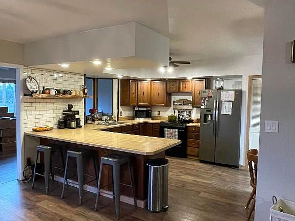Welcome to rural living with an easy commute to Great Falls. You'll love that the home has been mostly remodeled to current color trends and styles with updated lighting, laminate floor, carpet, paint, newer appliances, stainless refrigerator. Find 3 bedrooms and two handsome baths on the main level. Enjoy a sunroom/flex space with abundant light and windows, adjacent to the kitchen. The enormous detached garage formerly housed semi-trucks, so it has high doors and ceilings and adjacent heated space has been tastefully converted to a party room with a bar and refrigerator. The grounds are fenced and offering mature shade trees, big expanse of lawn with sprinklers and dog kennels. No covenants, so bring your chickens, etc... Call Lynn Kenyon at 406-770-0013 or your real estate professional Two wooden porches. Play structure passes to new buyers. Built-in sun blocking blinds in sunroom. Dog runs. Mountain views! Detached garage was-once a separate, heated one car garage with the semi-truck garage attached, so versatile space with plenty of storage. Currently, seller uses as party area/exercise room and garage, but could easily be converted back to a multi-car garage. Seven lots total.