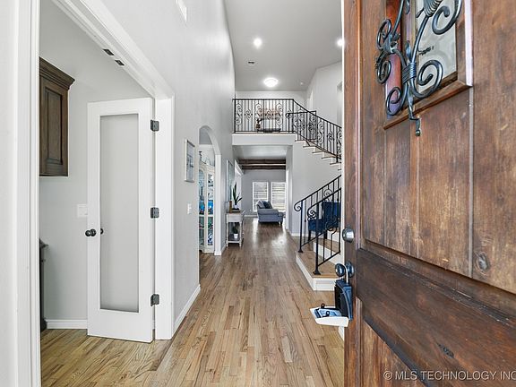 Exquisite home in Bixby Schools boasting a functional layout that offers it all! Kitchen and guest 1/2 bath have been recently updated with all new cabinets, soft close doors and drawers, backsplash & countertops in 2024, along with refinished hardwood floors. Primary bedroom has an incredible bath with separate sinks, glass oversized walk in shower and corner jetted tub. The 2nd bedroom is down with a private bath. The formal dining, coffee bar, breakfast room & breakfast bar allows the opportunity for entertaining the whole family. Do you work from home? The front private office gives you the space to take care of the day's work. Game Room and 2 bedrooms are up as the Stunning winding staircase welcomes you into the home. WIFI controlled sprinkler system, tons of built-ins, lots of storage, including 2 large floored attic areas and a 3 car garage. Exterior has recently been professionally painted. Neighborhood Pool, park, trails, clubhouse and pond!!
