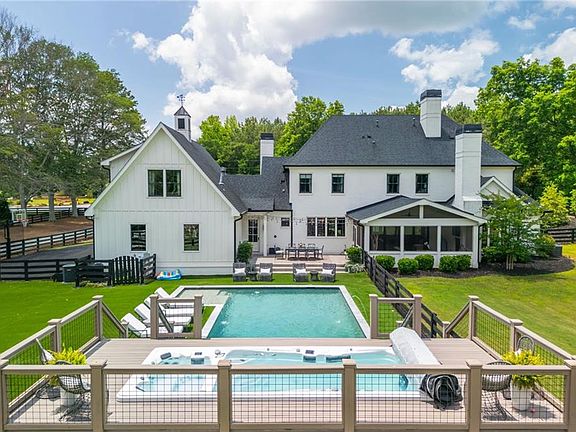 Experience the best of Milton living at 13815 Cowart Road, a truly one-of-a-kind property where thoughtful design meets unmatched outdoor living on over 3 spectacular, flat, private, and buildable acres. Tucked away on a peaceful dead-end street with no thru traffic, this coveted walk-out home is surrounded by natural beauty including protected wooded land across the street owned by Summit Hill Elementary that will never be developed. From the moment you arrive, the paved circular driveway and manicured landscaping welcome you with timeless curb appeal. Every detail of this home has been professionally designed with high-end finishes, custom lighting, and hardwood flooring throughout. The main level has an abundance of natural light and was made for entertaining and everyday comfort. Accordion doors open the living room to an enclosed porch with a wood-burning fireplace, creating a seamless indoor-outdoor flow. The chef’s kitchen is a true showpiece, featuring dual islands, leathered marble countertops, Wolf appliances, custom cabinetry, and designer lighting. A walk-in butler’s pantry offers exceptional storage and functionality. The formal dining room shines with its own fireplace and space for large gatherings, while a spacious mudroom includes laundry, extra fridge, workstations, and built-ins for effortless organization. The primary suite on the main level offers a luxurious, private retreat with rare separate his and hers closets with custom closet systems. The en-suite bath features custom tilework, designer mirrors, and high-end lighting. Floating stairs lead to three upstairs bedrooms, two bathrooms, and a secondary laundry room, while a separate staircase leads to a private guest suite above the garage with its own living space—perfect for guests, teens, or multi-generational living. Outside of the spectacular home, the land and outdoor wonderland is what makes this property truly unforgettable and special. The backyard is a private oasis designed with both relaxation and adventure in mind. A top-of-the-line, oversized professional swim spa with Trex decking offers year-round fun and was a $150K+ upgrade. The flat, turfed backyard also includes a heated pool, sundeck, new paver patio, and outdoor kitchen, perfect for dining al fresco or hosting family and friends. Beyond the yard, the property opens up to a world of exploration: ATV trails, a zip line, a custom Firefly Treefort, swing set, and a firepit with string lights await. It’s a true back-to-nature escape that’s rare to find so close to Downtown Alpharetta, Crabapple, GA-400, and more! It’s a lifestyle, a sanctuary, and a place where unforgettable memories are made. Come experience the magic of 13815 Cowart Road for yourself.
