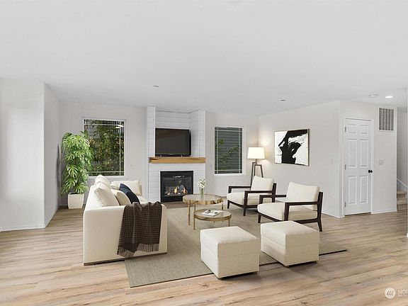 Wide open Eastern views from this near 3,000 sqft house, perched in the trees. Conveniently located near 405, I5 & 99, Southcenter, SeaTac (not in the flight path), Renton and Seattle. Large light and bright living room, wired for surround sound. Updated kitchen with new counter tops, newly painted cabinets, new tile back splash and dining space which opens to your back patio, great for BBQing. 4 bedrooms upstairs, including oversized primary with en suite and walk in closet. Basement bonus room, big enough for your pool table, video game den or both. Interior freshly painted and new carpet. Tall two car garage with extra storage space, allows for 2 large cars, outdoor toys and storage.
