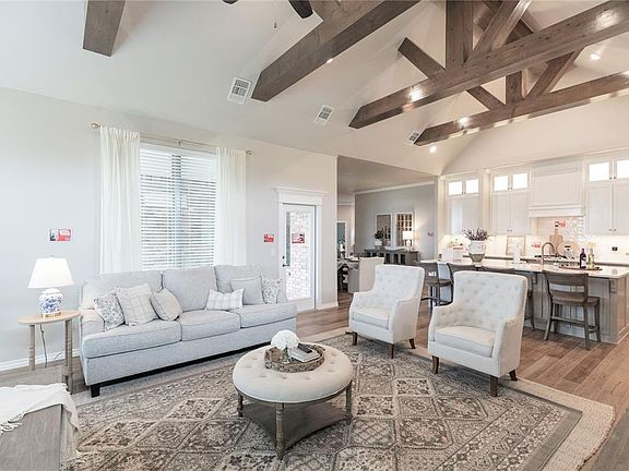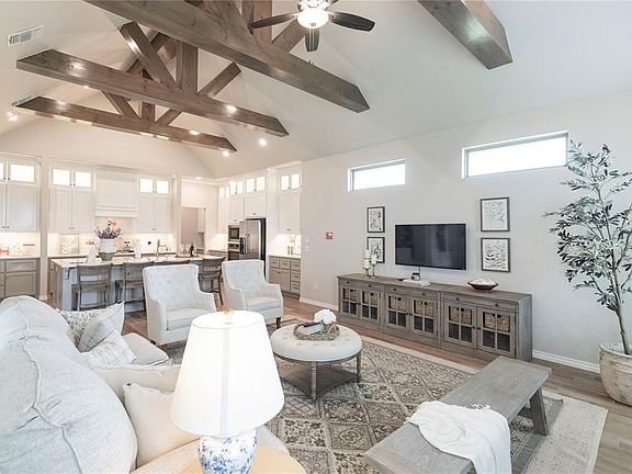 MODEL HOME FOR SALE!! This Lynne Bonus Room floor plan includes 3,805 Sqft of total living space, which features 3,425 Sqft of indoor living & 380 Sqft of outdoor living space. There's also a 650 Sqft, three-car garage with an HVAC system, lights, and an in-ground storm shelter installed. This exquisite model home offers 5 bedrooms, 3 full bathrooms, a powder room, a mud and utility room, an oversized bonus room, and tons of extra features and space for any and all activities. The great room is unlike any other, featuring a center gas fireplace surrounded with a stacked stone detail to the ceiling, eggshell paint on all walls, large windows, wood-look tile, Cat6 wiring, and a breathtaking cathedral ceiling with a crows feet detail that extends from the living room to the kitchen. The up-scale kitchen boasts an oversized island, 3 CM countertops, custom-built cabinets to the ceiling with glass and lights in the uppers, stainless steel appliances, a butler’s pantry, a walk-in pantry featuring a glass pantry door, and more wood-look tile. The primary suite sits on the other side of the home and offers a sloped ceiling detail with a ceiling fan, large windows, and a HUGE walk-in closet. The unmatched primary bath features upgraded tile, a batwinged vanity, a private water closet, a free-standing tub, a European walk-in shower featuring a rain head shower, and an extra storage closet. Study features wood-look tile. The EXTENDED outdoor living section welcomes a wood-burning fireplace, a gas line, and a TV hookup. Other amenities for the new home include our healthy home technology, a whole home air filtration system, a tankless water heater, R-44 insulation, & so much MORE!