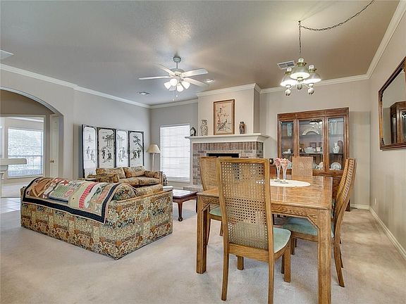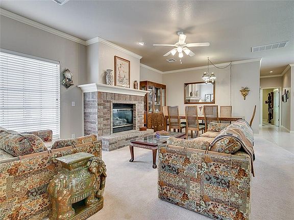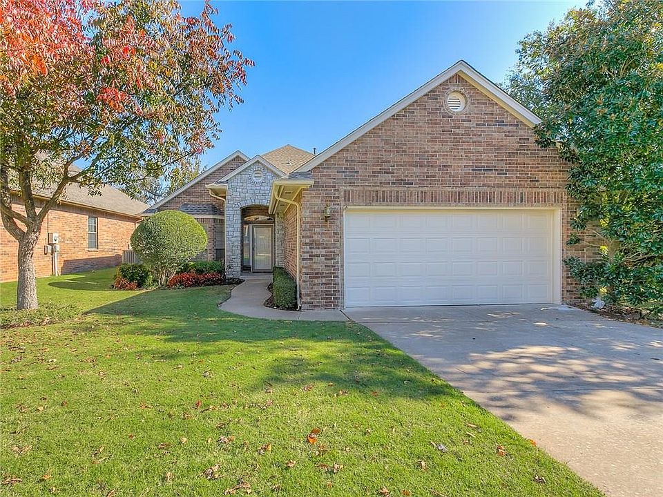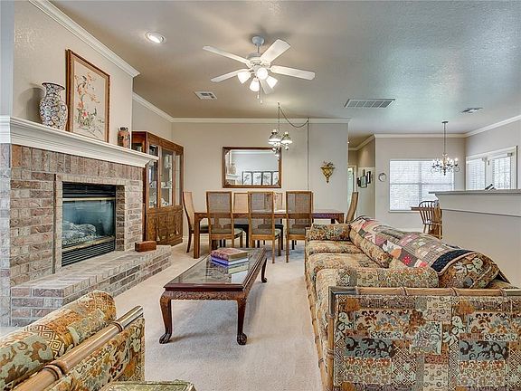 Brand new listing in SE Edmond Oak Hollow addition! Inviting entry welcomes you into your new home. Study/bonus/craft room with French doors off of true entry. Living room with brick fireplace and ample space for a formal dining if needed. Open floor plan with kitchen and dinette with access to covered back patio. Secondary bedrooms are connected by second bath. Half bath off utility area. Huge master suite with lots of natural light and access to back covered patio. Master has large walk in closet, jetted tub and separate shower. Backyard oasis! Small fish pond and fenced in yard perfect for relaxing. Don't miss out this one!! HOA covers mowing of yard-front and back, pool, rec center and gated entry.