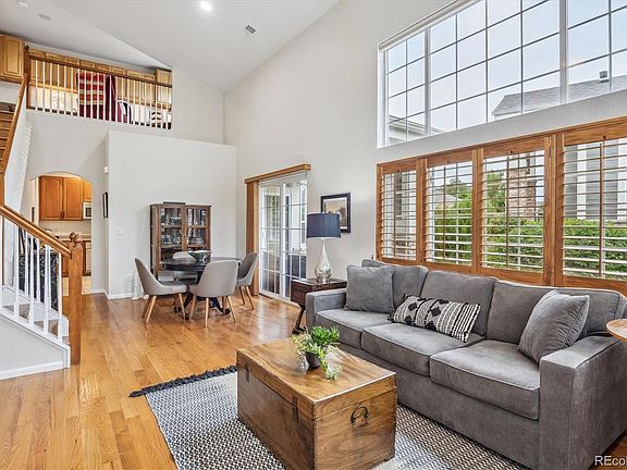 Welcome to this charming 2-bedroom, 2 ½-bath condo nestled in the picturesque Falls at Legend Trail in Broomfield. This home offers ample living space, featuring a cozy fireplace and elegant hardwood floors. The vaulted ceilings infuse the interior with natural light, creating an open and airy atmosphere that is both inviting and refreshing. The heart of this condo is the well-appointed kitchen, boasting Corian countertops, additional bar seating, and stainless steel appliances. A lovely bay window in the kitchen's eating area offers views of the lush exterior landscaping. The main floor primary bedroom is a true retreat, complete with an ensuite 5-piece bathroom and a spacious walk-in closet. A dramatic staircase leads to a loft area with built in desk and storage cabinets; it's perfect for use as an additional living room, TV room, home office, or whatever suits your lifestyle. The upper level also offers an additional bedroom and full bath. Step outside to your covered patio and savor cool autumn evenings while taking in the serene surroundings. This is the ideal spot to unwind after a long day or enjoy a morning cup of coffee. This property also offers an an attached garage that opens to the laundry room with a utility sink and leads into the kitchen. Outdoor enthusiasts will appreciate the proximity to numerous walking trails. Additionally, this location is highly convenient, with grocery stores, schools, restaurants, pharmacies, banks, and more just a stone's throw away. Don't miss this one!