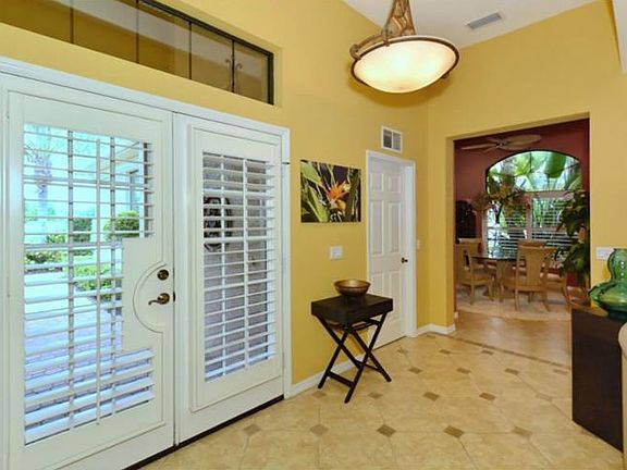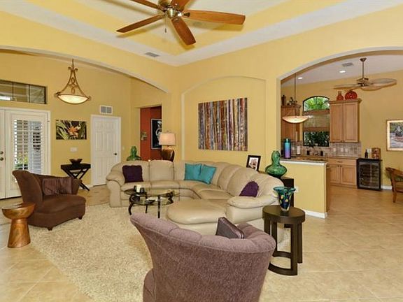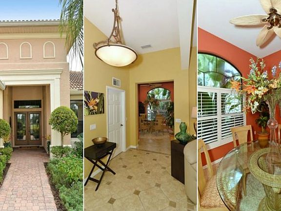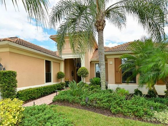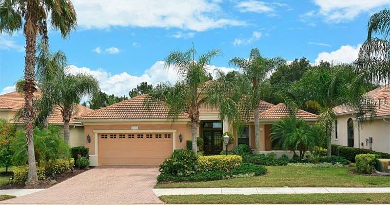 As you approach this lushly landscaped home with brick paver driveway you are welcomed with glass double doors opening to the foyer with decorative tile detail and a grand living room. The wall of sliders disappear as you enjoy views of the sparkling pool and spa with private paver lanai. The architectural details are breathtaking throughout the home with tray ceilings, columns, arches and niches. The kitchen is fit for a chef with staggered wood cabinetry, granite counters, tile back splash and a breakfast area with bay windows allowing natural light to fill the home. There is a separate formal dining room and the living area features a wall of custom built-ins. The spacious master retreat offers two walk-in closets with generous custom cabinetry, tray ceiling and French doors to the lanai. The master bath has been remodeled featuring separate vanities with granite counters, quality wood cabinetry, garden tub, glass shower and private door to the lanai. There are 2 additional bedrooms with custom closets, remodeled guest bath and a den with beautiful French doors. The sliders will take you out to a picturesque heated, pebble tec pool and spa along with a new outdoor kitchen and gas fireplace making it the perfect place for entertaining with family and friends. Located in a maintenance-free neighborhood of Lakewood Ranch Country Club, this home is waiting for an owner who wants to enjoy the Florida lifestyle at it's best!