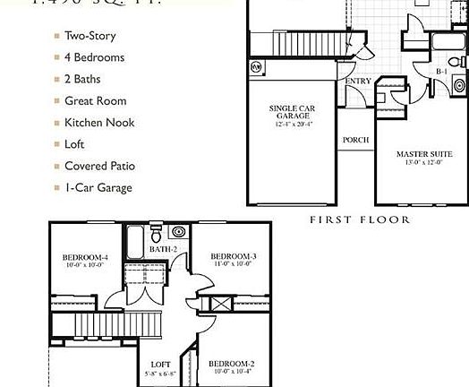 Carefree Homes new beautiful 4 bedroom floor plan "The Amazon", Master bedroom downstairs with a walk-in closet. Kitchen open to Great room and dining area. Three bedrooms, loft, full bath and utility room upstairs.