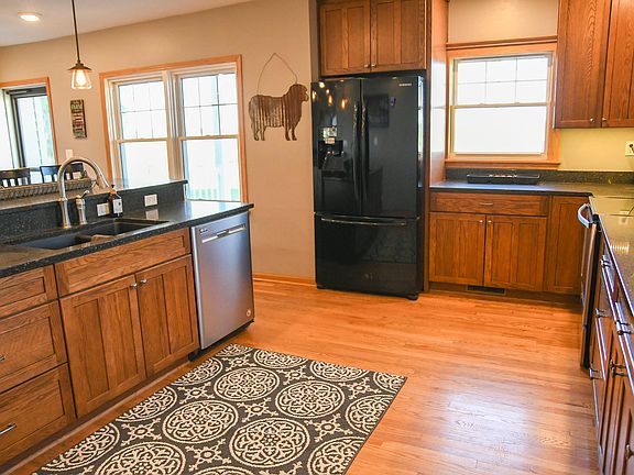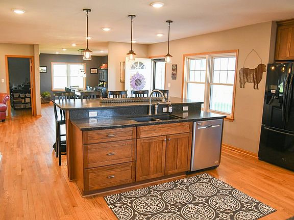 This large ranch home has so much to offer! Spacious kitchen with large island and bar top seating, a formal dining room, a large mudroom with laundry & 3/4 bath right off the garage, master bedroom with walk in closet & full bathroom, a second bedroom, big living area with fireplace and game area, plus a 1/2 bath for guests. Downstairs you'll find a full bath with another laundry, 2 more big bedrooms w/ daylight windows, a family room, large bonus room & plenty of storage. 60' x 135' steel machine shed has approx 1/3 finished with radiant heat, insulated, concrete floor & office; back 2/3 dirt floor, big doors plus a 18' x 72' lean-to on east side.